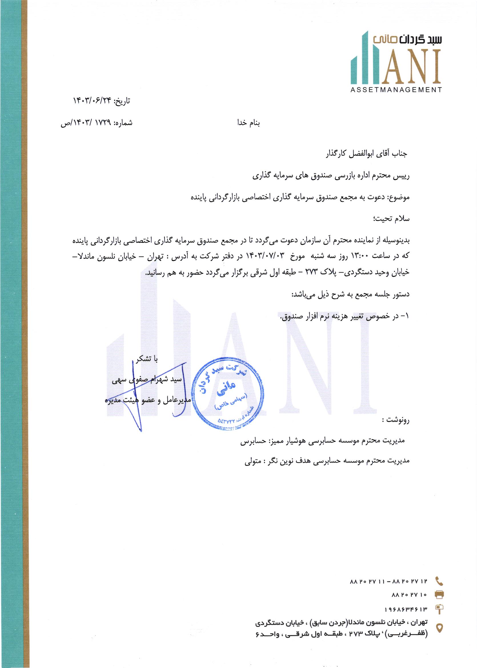 دعوت به مجمع صندوق-تغییر هزینه نرم افزار( امید نامه ای)